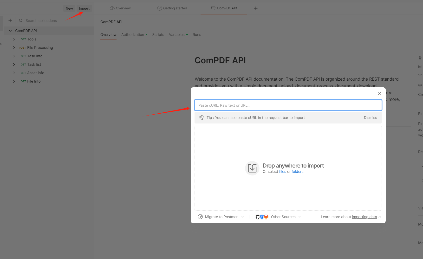 Postman is a cross-platform application for interacting with APIs. You can use different examples immediately using the sample files included in our official Postman collection.